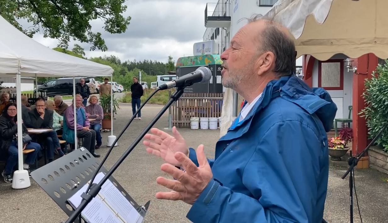Am Sonntag fanden sich zum Festgottesdienst und dem anschließenden Programm trotz mäßiger Temperaturen rund 150 Gäste ein. Als Gastredner sprach Peter Klentzan. Sowohl seine Predigt als auch sein Vortrag „Trauma und Seelsorge“ berührten durch seine Erfahrungen als Diakon an der Gedenkstätte im KZ Dachau und in Kriegsgebieten im Auftrag von „Wings of Hope“. Klentzan zeigte in der Predigt zu Jesaja 42 auf, dass das christliche Weltbild die Antithese zum Faschismus ist, der das Schwache verachtet. „Der Gottesknecht zerbricht das geknickte Rohr nicht und löscht den glimmenden Docht nicht aus. Dies scheint auf dieser Welt noch immer eine Utopie, aber es gibt Orte, an denen diese Hoffnung gelebt wird – die Feldsonne ist für mich so ein Ort.“ So Klentzan und weiter: „Der Gottesknecht war Jesus und das können heute wir sein: Christen, die sich Gott zur Verfügung stellen – so wie seit 20 Jahren in diesem Haus.“ Die Predigt beendete Klentzan mit einem Zitat des Gründers Pfau: „Der Menschensohn kommt, um zu dienen, er ist interessiert, hat ein offenes Ohr, begegnet respektvoll, wertschätzend und verständnisvoll. Jesus ist uns Vorbild im Umgang mit Verwundeten, gibt uns die Richtung vor und befähigt uns durch seinen Heiligen Geist.“ Dieser Glaube prägt seit 20 Jahren die Arbeit in der Feldsonne. Über 80 Menschen mit verschiedenen Hintergründen durften das erfahren. Das wurde mit Musik von „Feldsonne & Friends“, gutem Essen vom „Windrädle“ der Erlacher Höhe sowie Kaffee und Kuchen gefeiert.