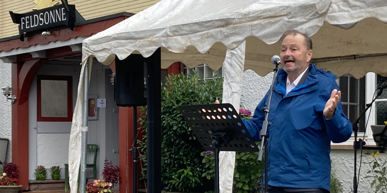 Am Sonntag fanden sich zum Festgottesdienst und dem anschließenden Programm trotz mäßiger Temperaturen rund 150 Gäste ein. Als Gastredner sprach Peter Klentzan. Sowohl seine Predigt als auch sein Vortrag „Trauma und Seelsorge“ berührten durch seine Erfahrungen als Diakon an der Gedenkstätte im KZ Dachau und in Kriegsgebieten im Auftrag von „Wings of Hope“. Klentzan zeigte in der Predigt zu Jesaja 42 auf, dass das christliche Weltbild die Antithese zum Faschismus ist, der das Schwache verachtet. „Der Gottesknecht zerbricht das geknickte Rohr nicht und löscht den glimmenden Docht nicht aus. Dies scheint auf dieser Welt noch immer eine Utopie, aber es gibt Orte, an denen diese Hoffnung gelebt wird – die Feldsonne ist für mich so ein Ort.“ So Klentzan und weiter: „Der Gottesknecht war Jesus und das können heute wir sein: Christen, die sich Gott zur Verfügung stellen – so wie seit 20 Jahren in diesem Haus.“ Die Predigt beendete Klentzan mit einem Zitat des Gründers Pfau: „Der Menschensohn kommt, um zu dienen, er ist interessiert, hat ein offenes Ohr, begegnet respektvoll, wertschätzend und verständnisvoll. Jesus ist uns Vorbild im Umgang mit Verwundeten, gibt uns die Richtung vor und befähigt uns durch seinen Heiligen Geist.“ Dieser Glaube prägt seit 20 Jahren die Arbeit in der Feldsonne. Über 80 Menschen mit verschiedenen Hintergründen durften das erfahren. Das wurde mit Musik von „Feldsonne & Friends“, gutem Essen vom „Windrädle“ der Erlacher Höhe sowie Kaffee und Kuchen gefeiert.